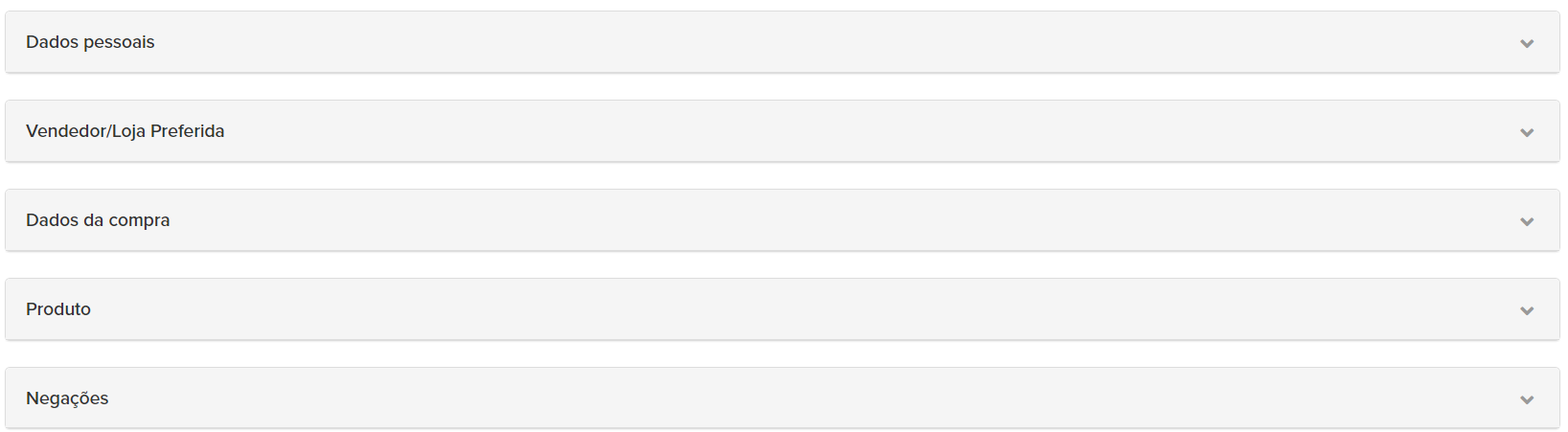 Ao acessar a área de Filtro de clientes, serão apresentados cinco tópicos: Dados pessoais, Vendedor/Loja Preferida, Dados da compra, Produto e negações.