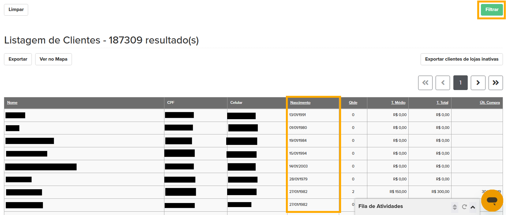 Então, após filtrar, aparecerá todos os clientes com aniversário em Janeiro.